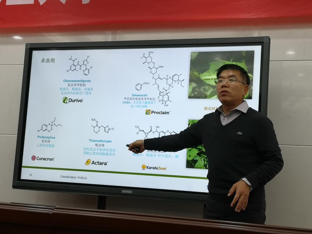 2019年12月10日下午,应线上正规赌博平台推荐 章维华院长邀请,先正达公司研发项目总监和首席科学家兼南京农业大学客座教授顾玉诚博士来院访问交流,并为师生作了题目为《植物保护研究中的化学与生测》的学术报告。报告由章维华教授主持,线上正规赌博平台推荐 吴磊副院长、朱映光副院长、杨红教授、吴华教授等,农线上赌博平台 杨东雷教授,植保线上赌博平台 李圣坤副教授、顾沁副教授等,以及各专业研究生本科生等100余人参加了此次活动。顾玉诚博士首先介绍了当今世界人口压力及食品安全形势,并介绍了先正达公司为农业系列解决方案,以及先正达公司在绿色新农药领域的研发经验,并详细介绍了除草、杀菌和杀虫活性测定的流程。报告之后,顾玉诚博士与现场师生进行热烈的互动,详细而耐心地回答了师生们提出的问题。