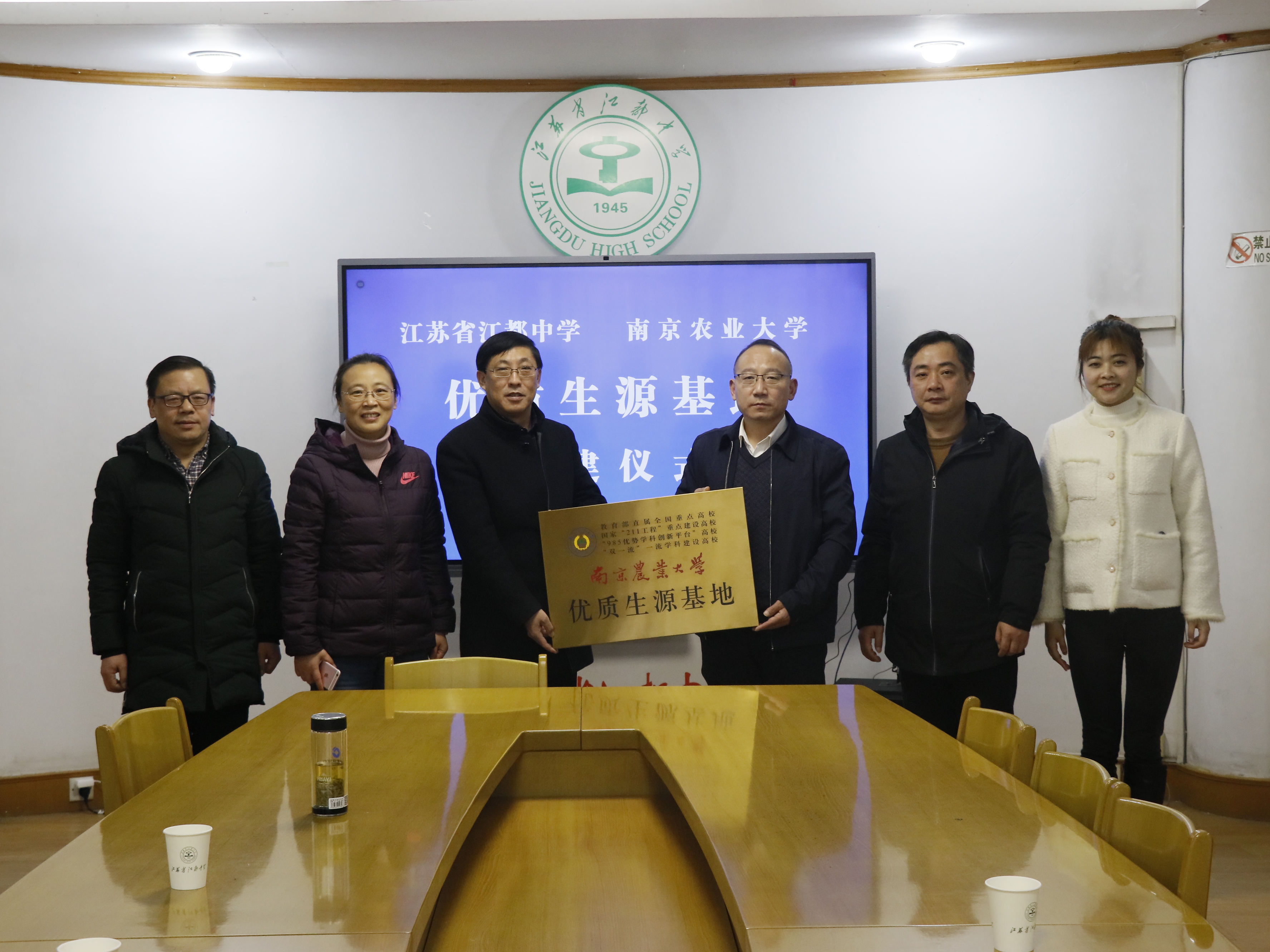 党委副书记桑运川与江都中学副校长季娴、蒋蓓,江都中学高三年级主任孙志新等进行了座谈。桑书记表示南京农业大学近年来与江都中学一直保持良好的共建合作关系,江都中学为南农培养和输送了一大批优秀学子。江都中学校领导肯定了南农在人才培养方面取得的优异成绩,并表示能与南农建立更加长久密切的共建关系。交流会上,桑书记代表南京农业大学为江都中学进行了优质生源基地的授牌。