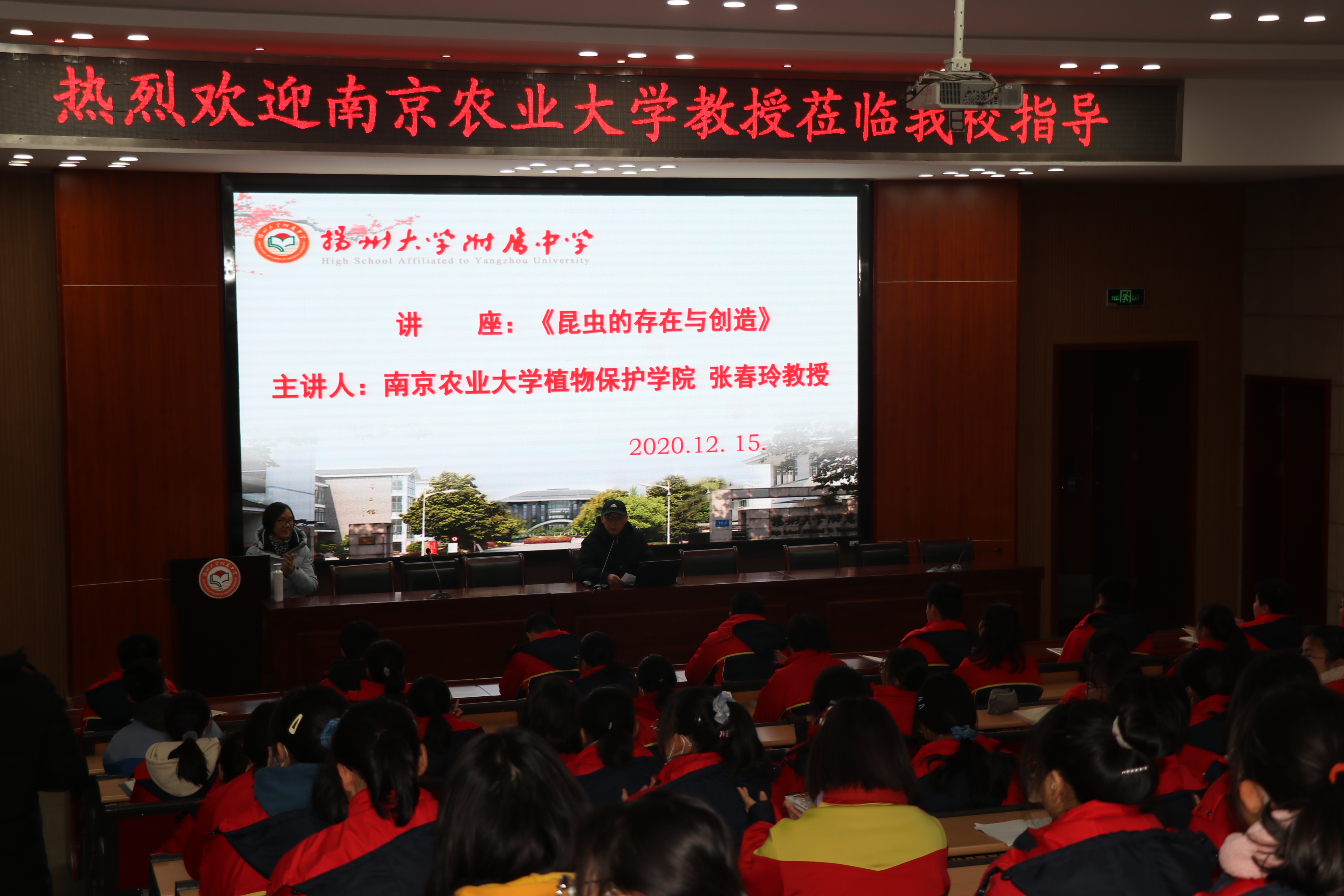 张兆祥老师为同学们介绍了我校的基本情况,并鼓励同学好好学习,提高人生理想。随后邀请植物保护线上赌博平台 张春玲教授为该校全体高一学生带来主题为《昆虫的存在与创造》的主题报告。