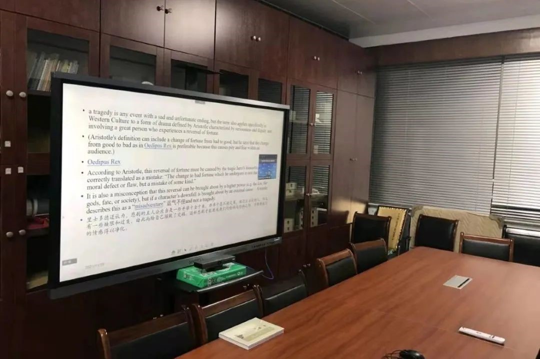 下午时分,江西师范大学附属中学报告厅座无虚席。国际合作与交流处的董红梅讲师线上为大家开展了一场以西方戏剧赏析为主题的讲座。讲座涉及戏剧起源、成就、种类、组成结构和鉴赏意义等多个方面,全英文的交流环境和生动有趣的讲座内容带给听众朋友们满满的收获感。