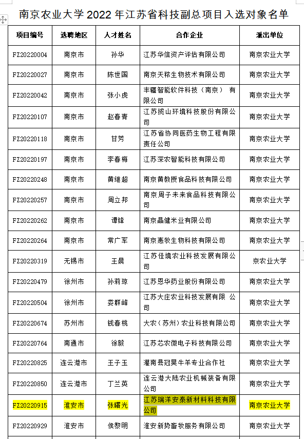 近日,省委人才办、省科技厅印发了《关于确定2022年江苏省科技副总项目入选对象的通知》,线上赌博平台 张曙光老师与合作企业江苏瑞洋安泰新材料科技有限公司联合申报的科技副总项目入选。