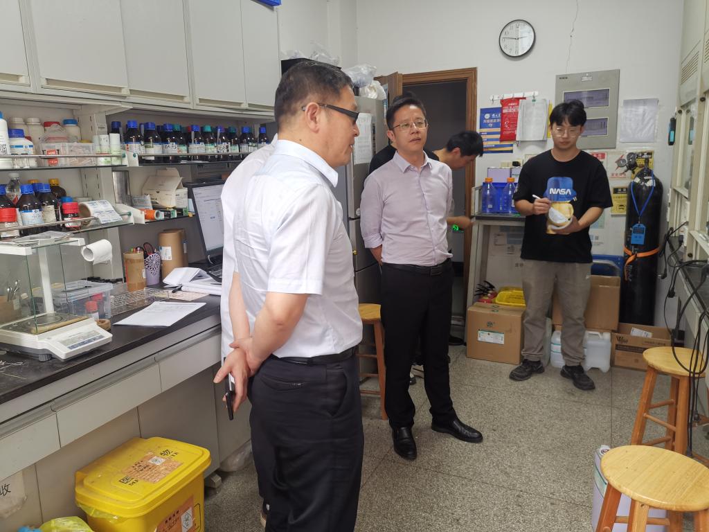 院领导一行查看了化学实验中心和物理实验中心各教学实验室、同位素中心各实验室,以及化学系、物理系各科研实验室的实验室水电气、危化品及危废、特种设备、消防设备等方面安全管理情况,重点关注了9月实验室及危险源安全专项检查发现问题的整改情况,检查发现整体情况较好,针对个别实验室存在管理不规范问题,进行了现场整改指导。